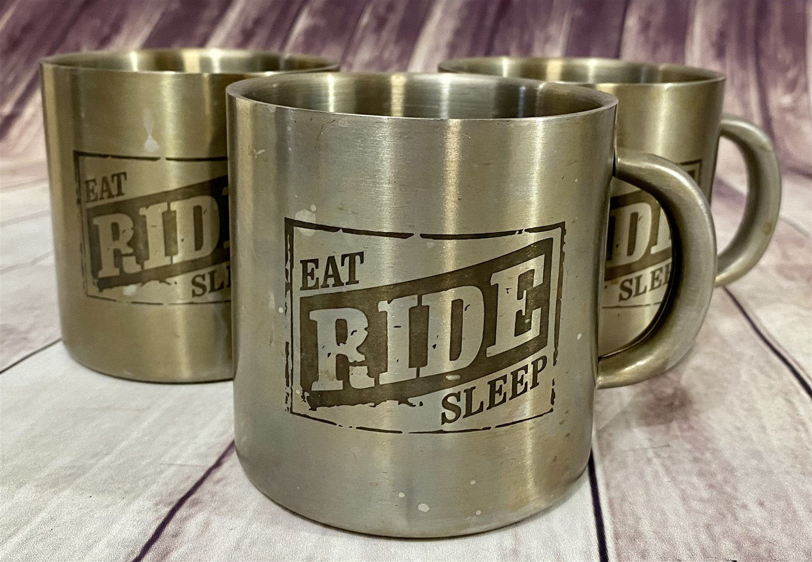 3 Stainless Steel Marlboro Eat Sleep Ride Motorcycle Coffee Mugs