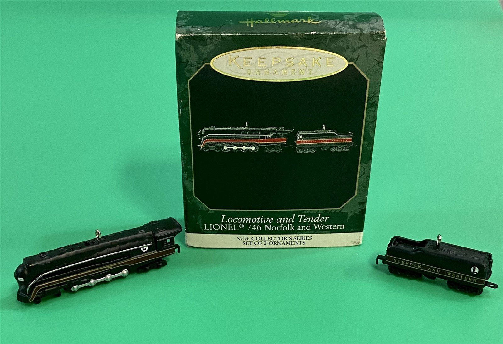 2pc Die Cast Metal Hallmark Keepsake Lionel Norfolk and Western Series Ornament