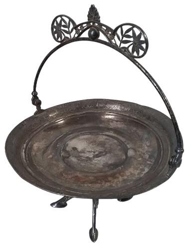 4-Footed Round Serving Tray with Handle Vintage Silverplate Design Around Edges