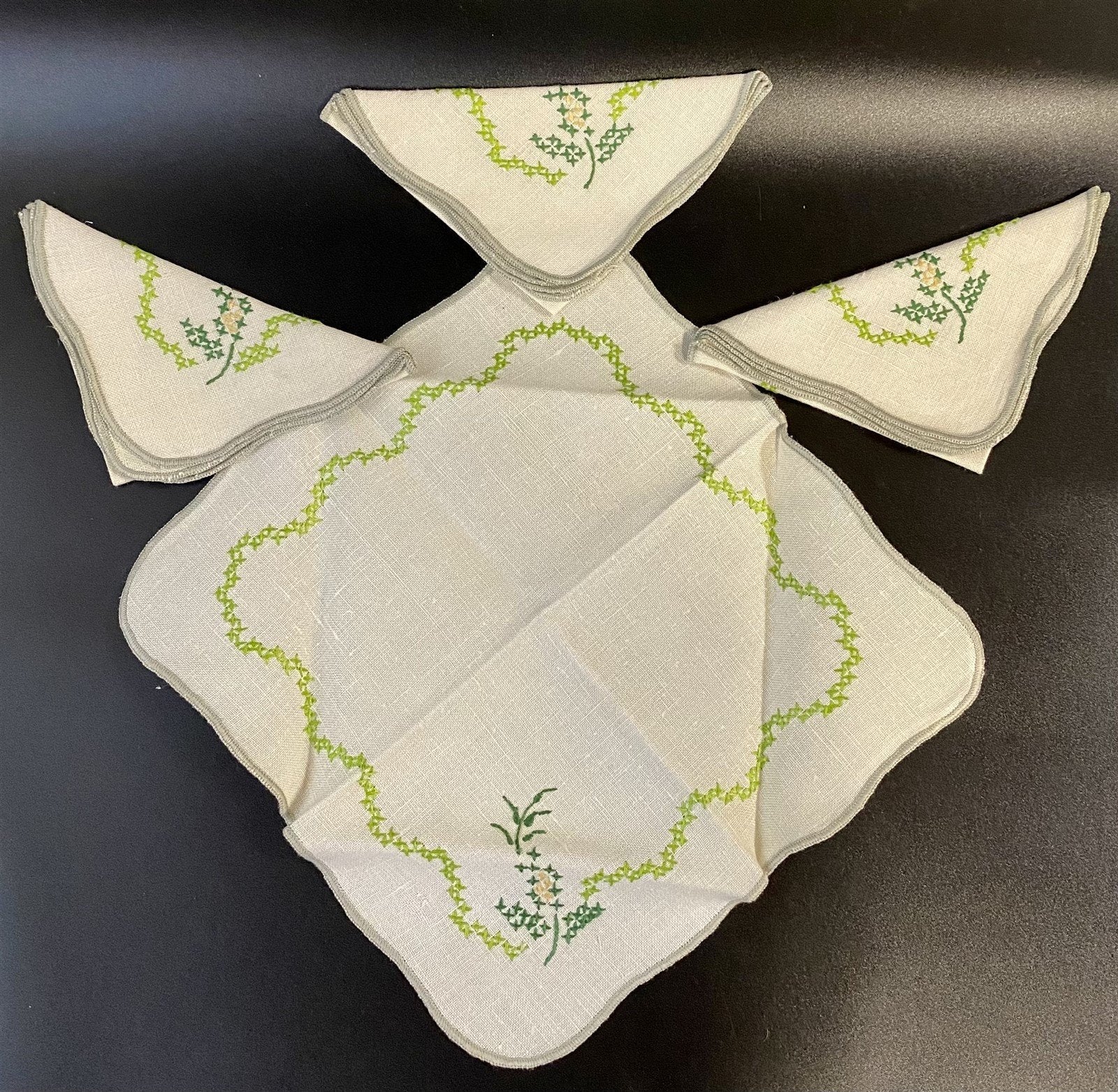 4 Vintage Hand Cross Stitched Floral Design Linen Cloth Napkins