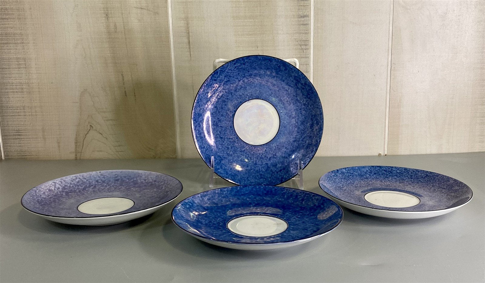 4 Vintage KMP Czechoslovakia Lustreware /Lusterware Blue and White Saucers