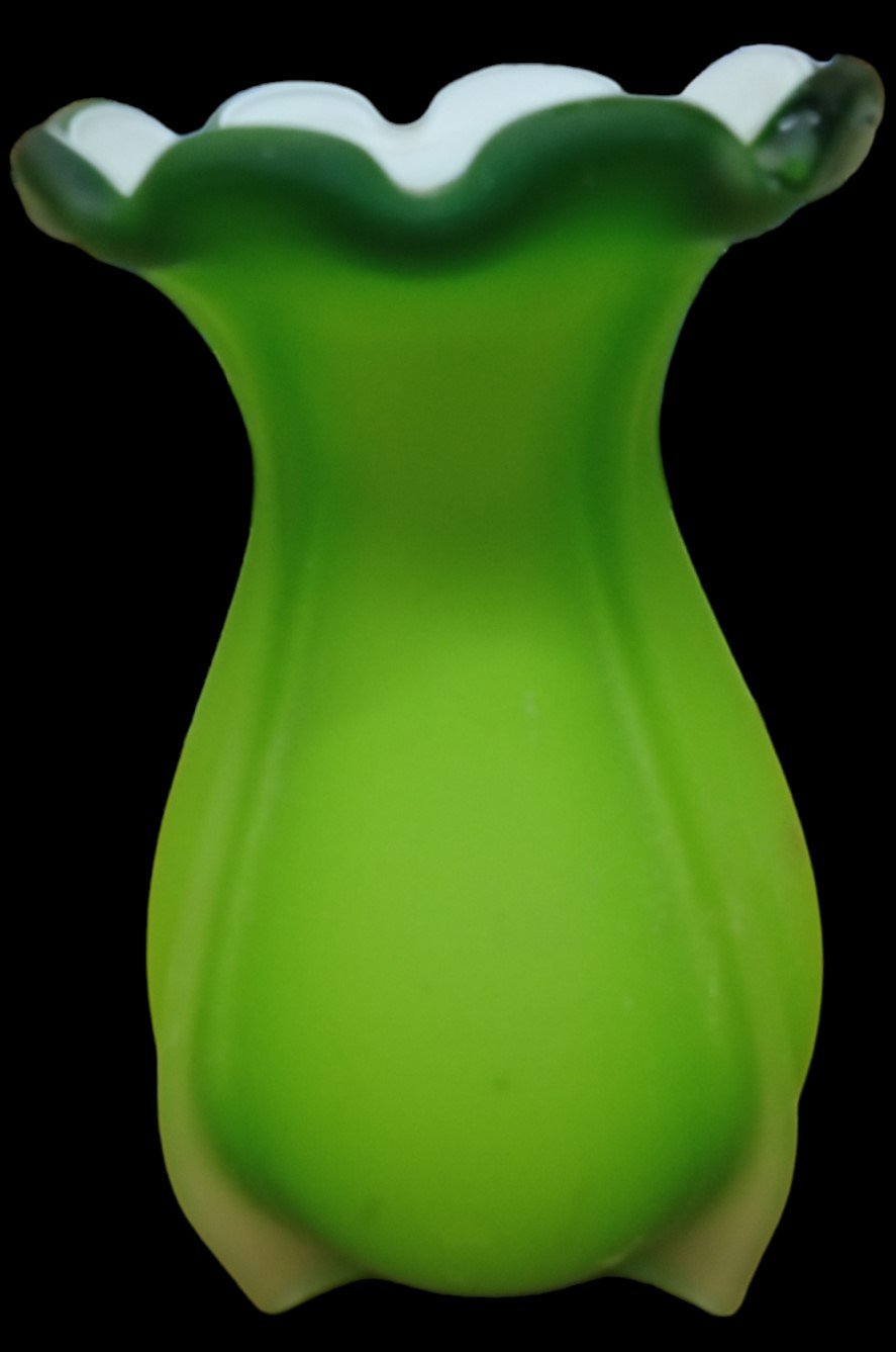 6" Green Vase Vintage Scalloped Edge Footed Base 3.5" Diameter White Interior