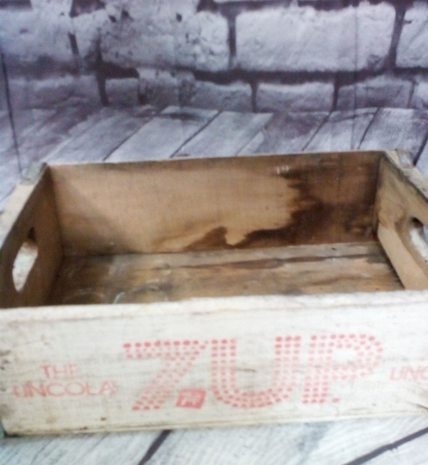 7UP Vintage Wooden Carry Crate White And Red With Galvanized Metal Straps
