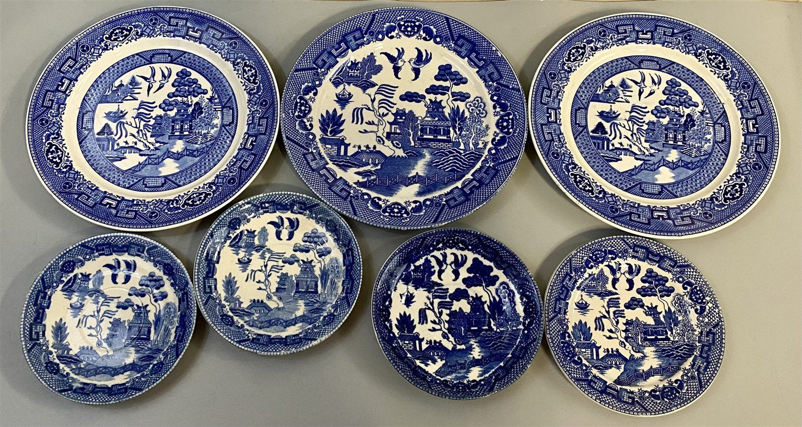 7 Unbranded Vintage Blue Willow Legend Asian Art Plates MIXED Makers Likely