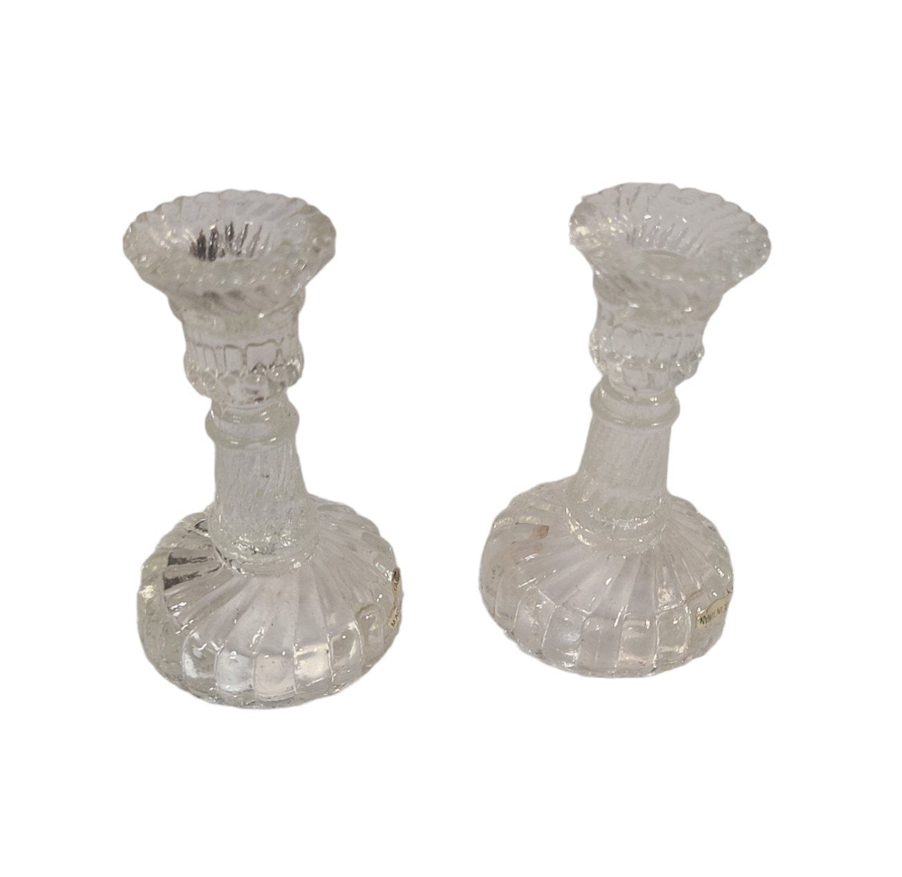 Adorable Crystal Mini Candle Stick Holders Set of Two Matching Vintage Clear