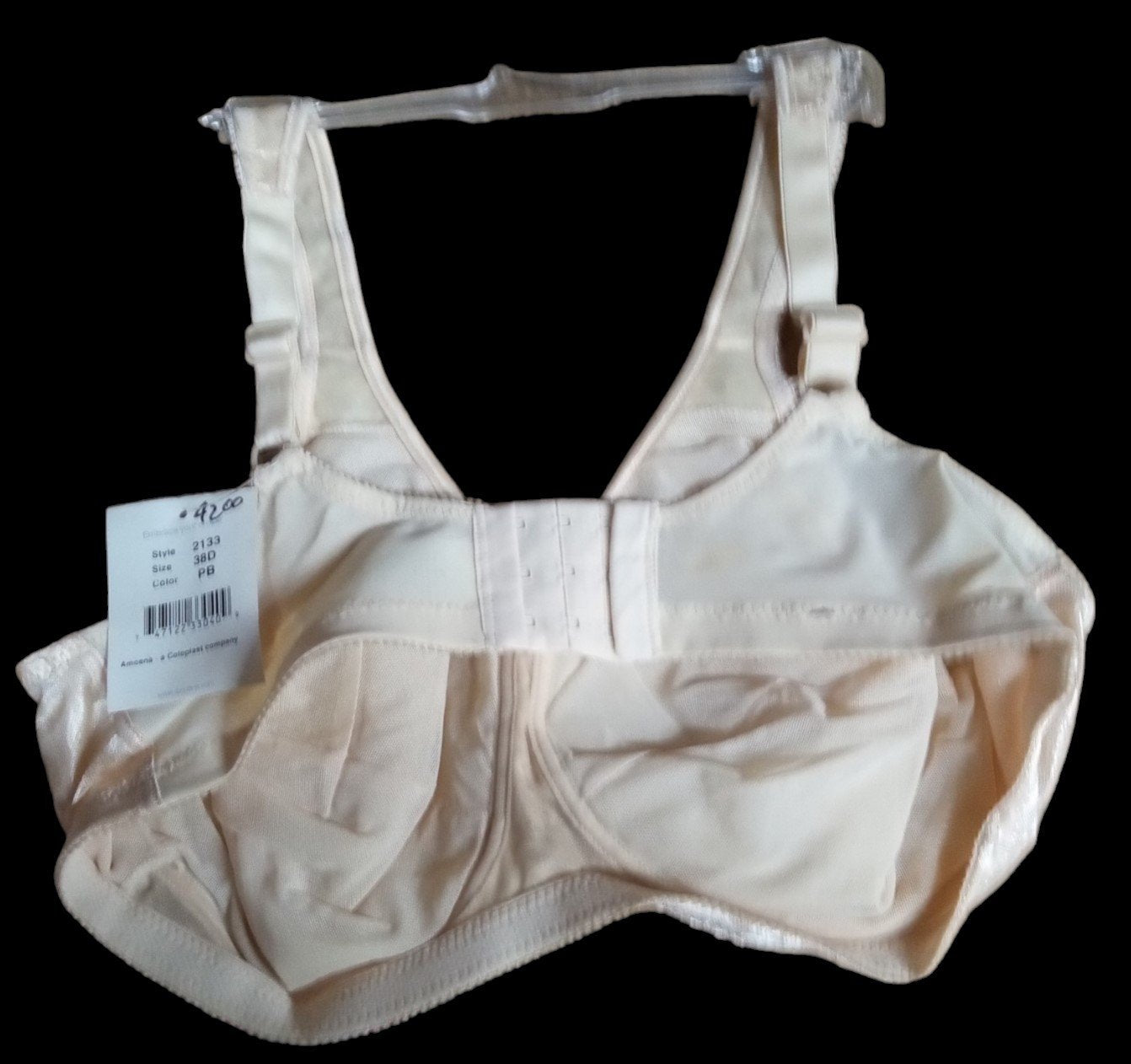Amoena Bra Pearl Beige Style 2133 Size 38D New Lingerie Store w/ Tags Hanger