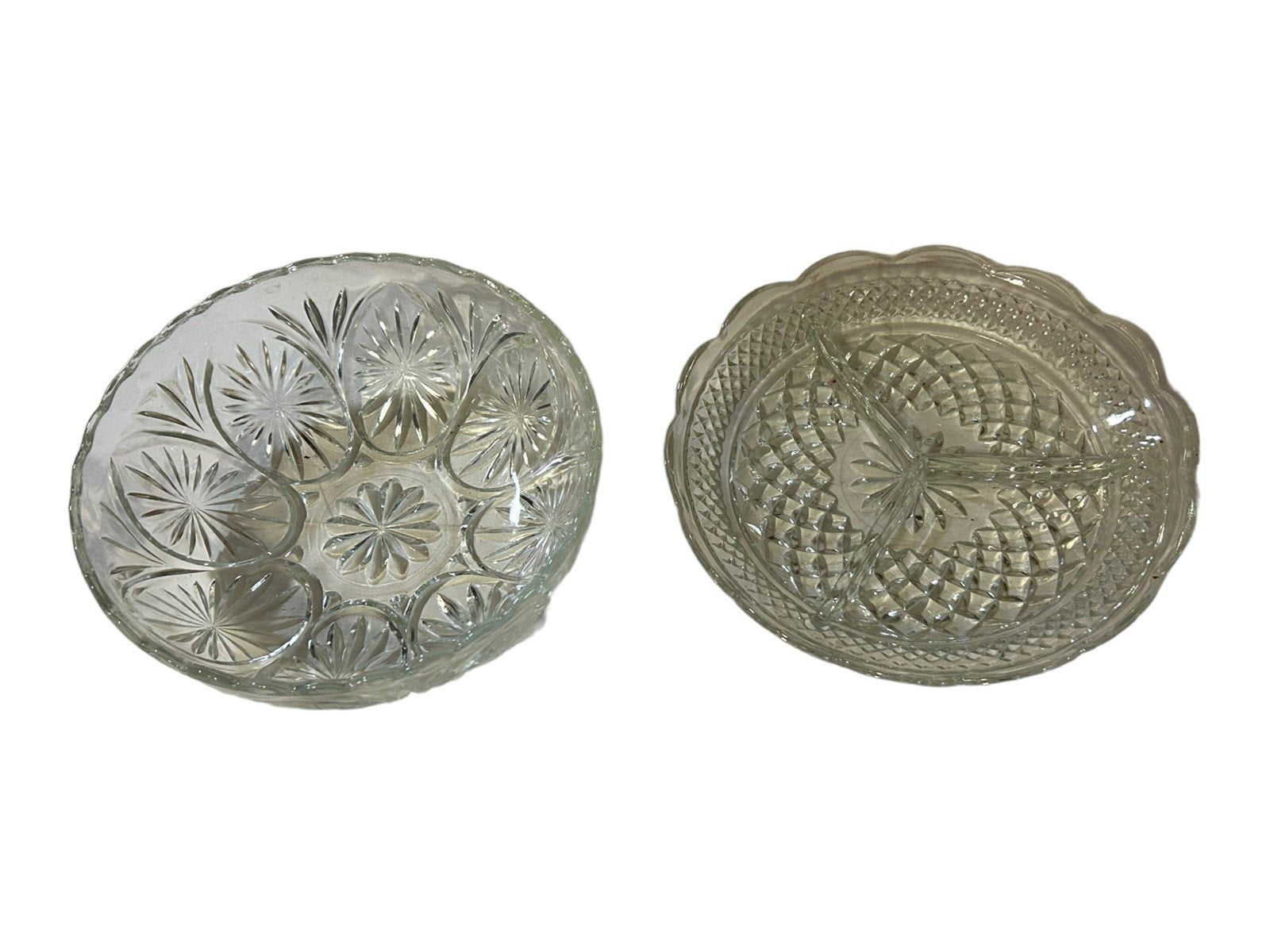 Anchor Hocking Medallion Scalloped Clear Glass Bowl & Wexford 3 Divided Dish Set