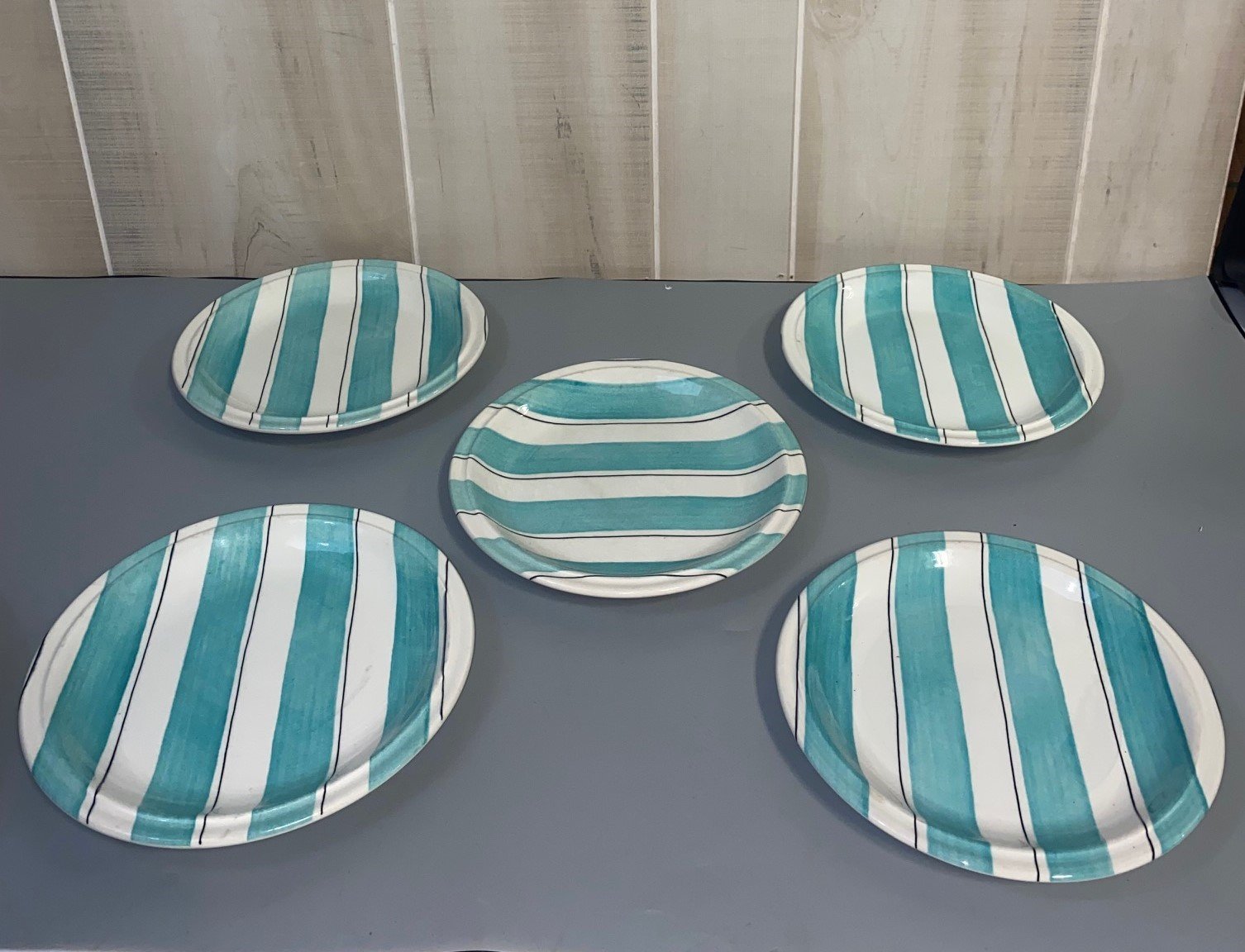 Set of Five Grindley Turquoise Pinstripe Luncheon Plates Staffordshire England