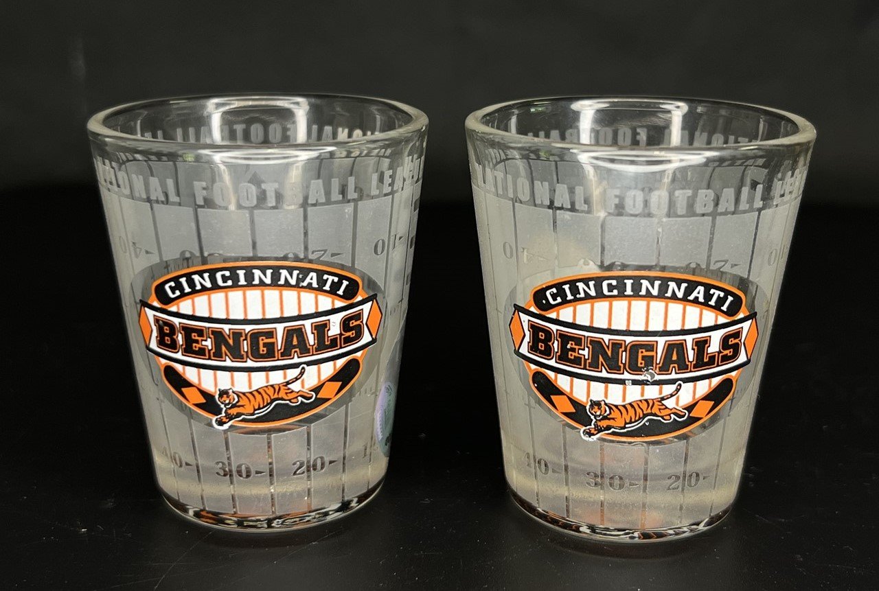 Set of Two NFL Cincinnati Bengals Part Frosted Glass Logo in Bottom Shot Glasses