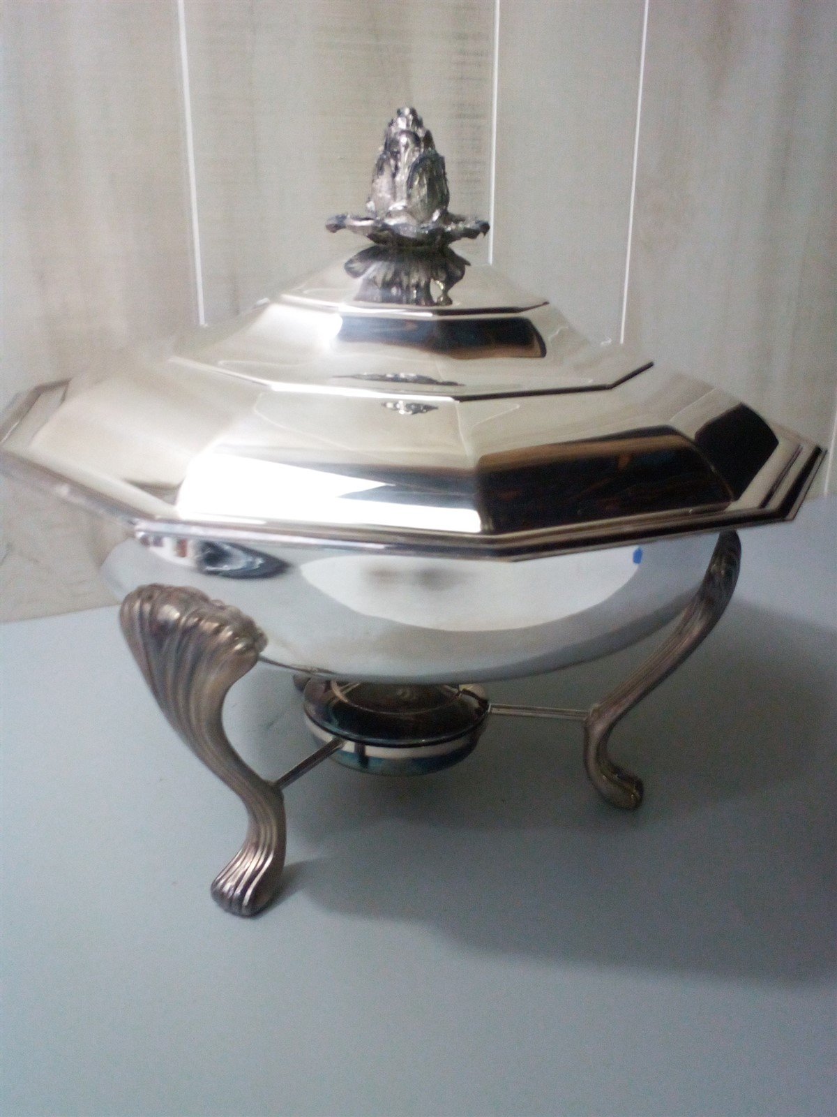 Sheffield Silverplated Covered Chaffing Dish With Burner 4pc Set