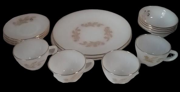 Antique Gold-Rimmed Vintage Flower Design Dinnerware Federal Glass 15 Pieces