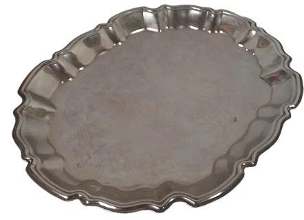 Antique Footed Oval Serving Tray Vintage Leonard or Rogers Scalloped Floral