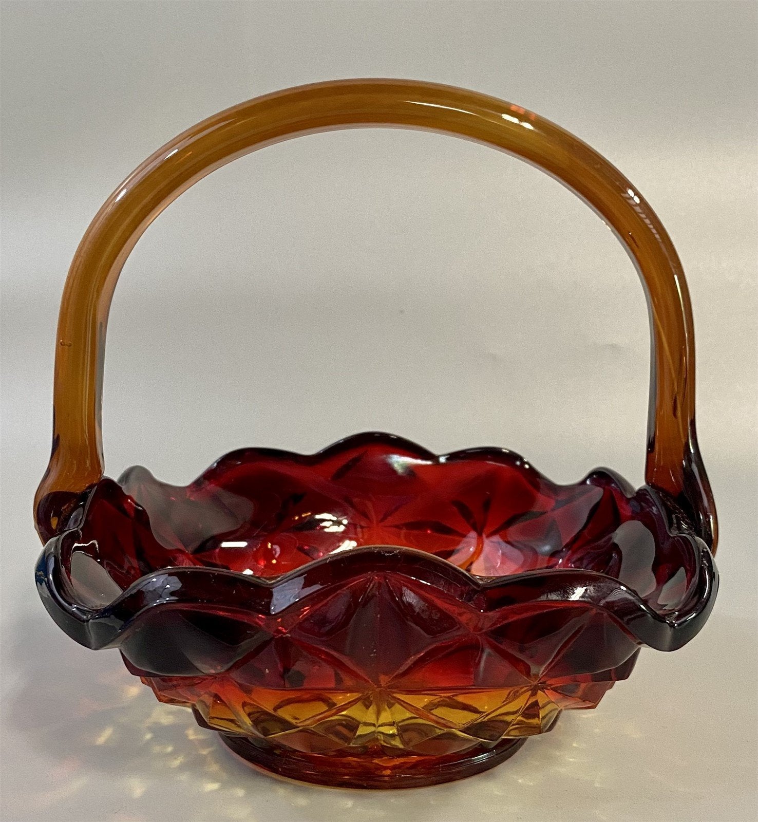 Square Star Cut Vintage Amberina Indiana Glass Basket Design Candy or Nut Dish