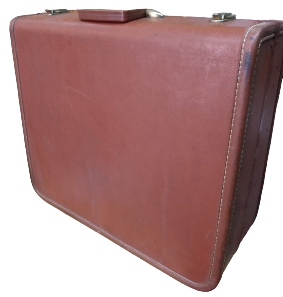 Taperlite Brown Faux Leather Double Latch Suitcase Vintage Travel