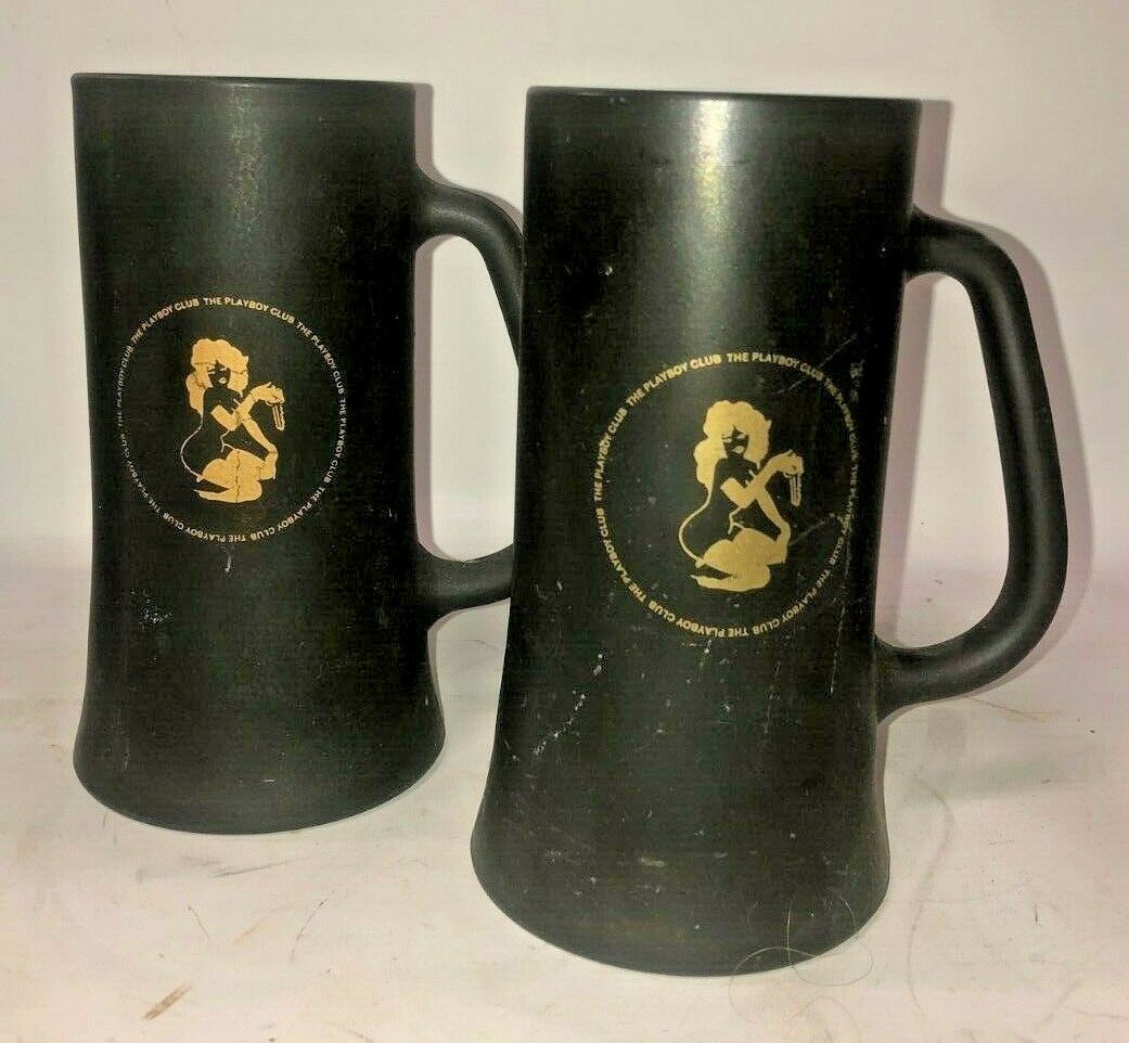 Two Vintage The Playboy Club Stein Mug Black Matte Gold Design