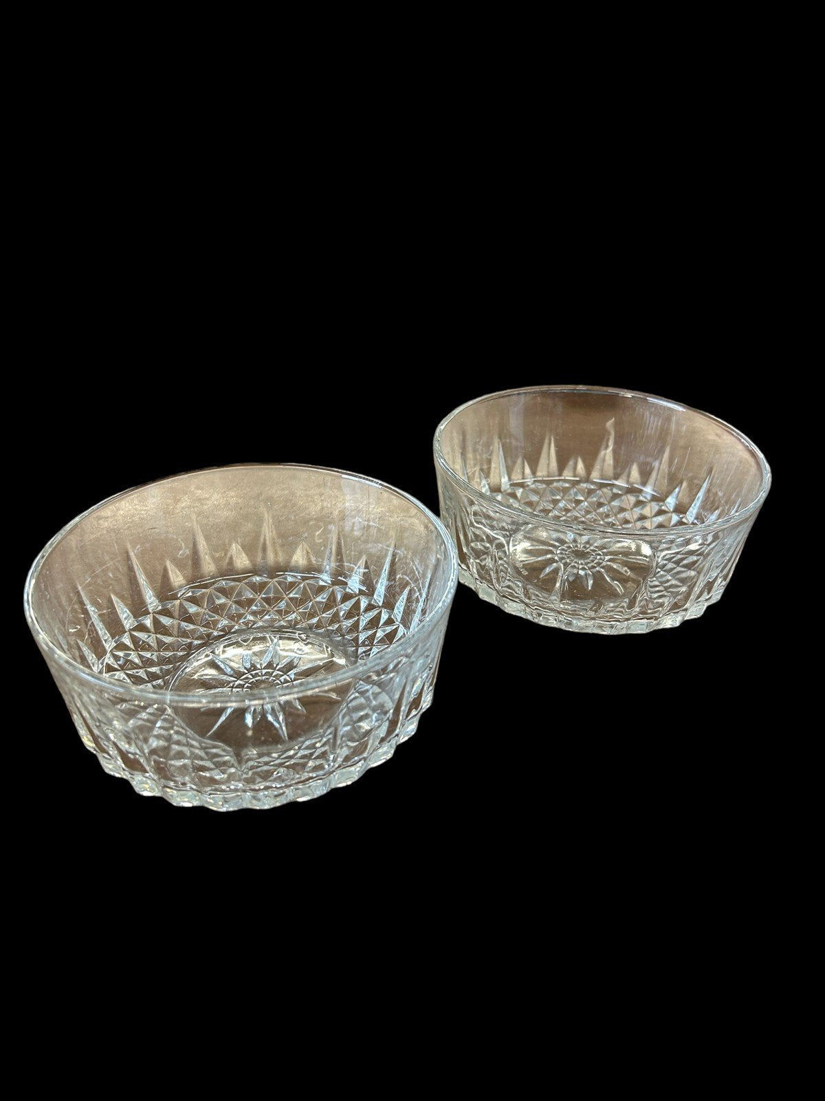 Two Arcoroc Candy Dishes Sunburst Clear Crystal Glass France Bowl Diamond 5"
