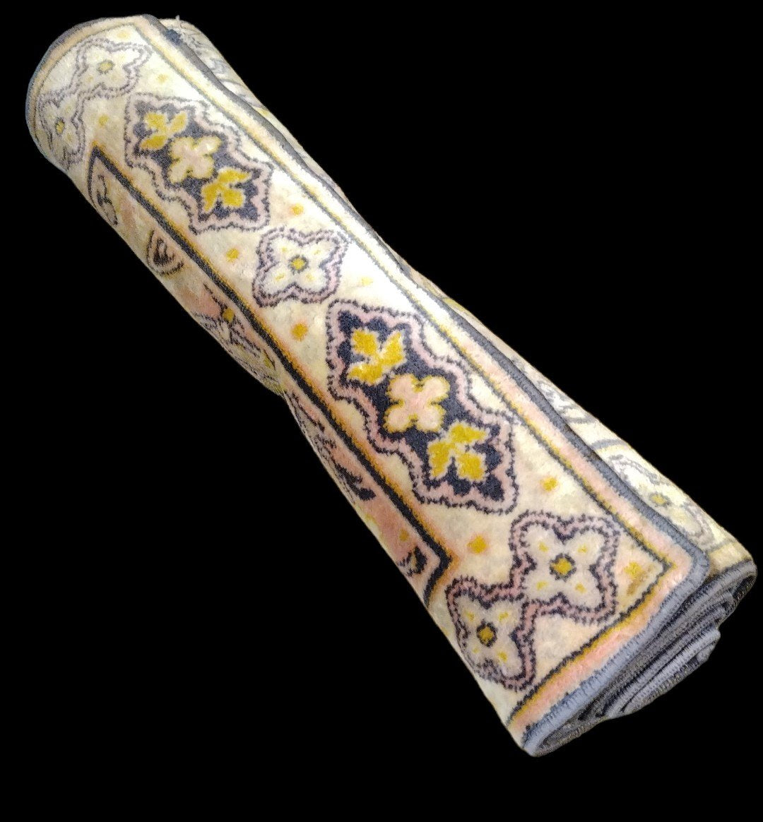 Antique Intricate Artisan Silk Pink Flower and Animal Motif Table Runner Rug