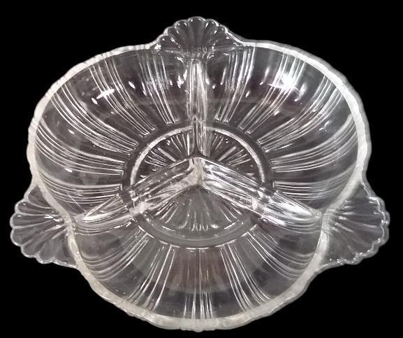 Antique Hazel Atlas Vintage Divided Dish Ridge Fan Pattern Clear Glass