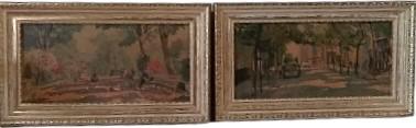 Antique J E Warfield Framed Paintings Vintage Park Promenade Trees Streets (2)