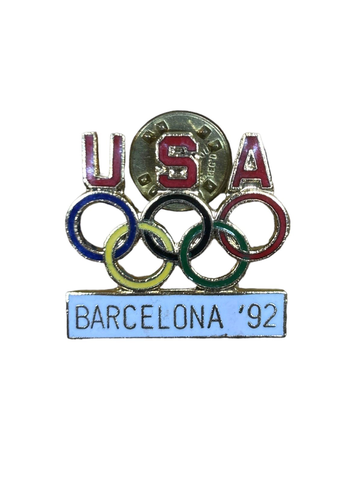 United States USA 1992 Barcelona Vintage Rings Gold Toned Hat Pin Lapel Pin