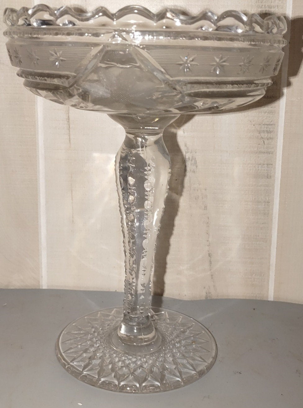 Vintage 1900's McKee Edwardian Pedestal Pressed Cut Glass Dessert Compote 8.5"