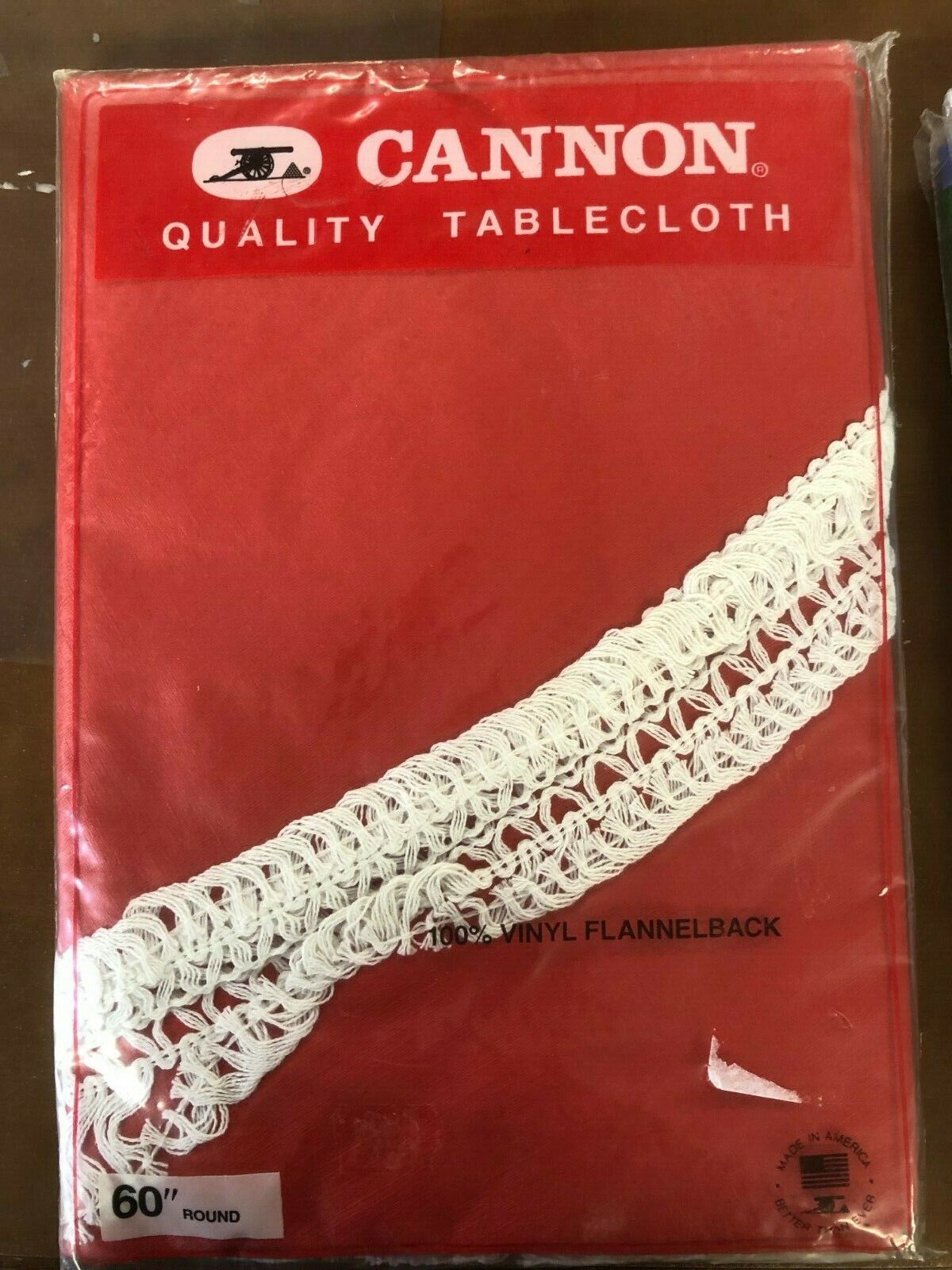 VINTAGE - NEW NEVER OPENED 60" ROUND RED FLANNEL BACK TABLECLOTH CANNON