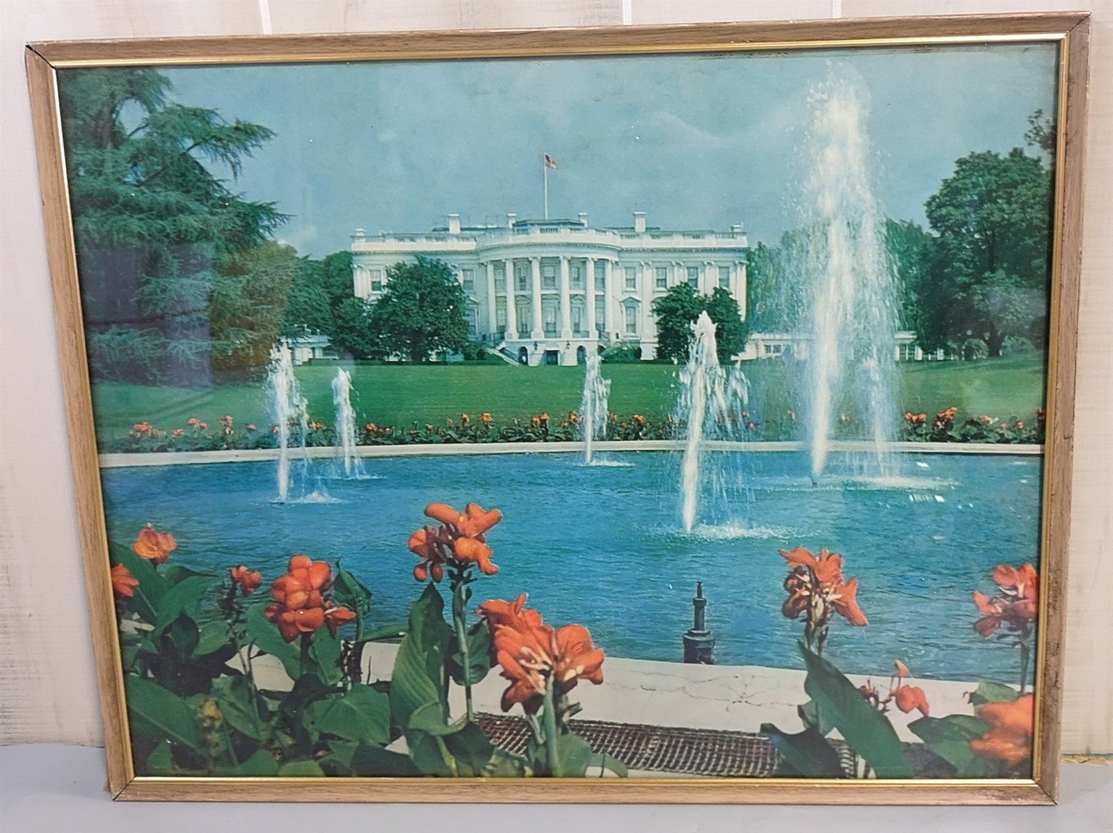 Vintage 1960's A. Simpson Framed Washington White House Photograph Signed 16x20