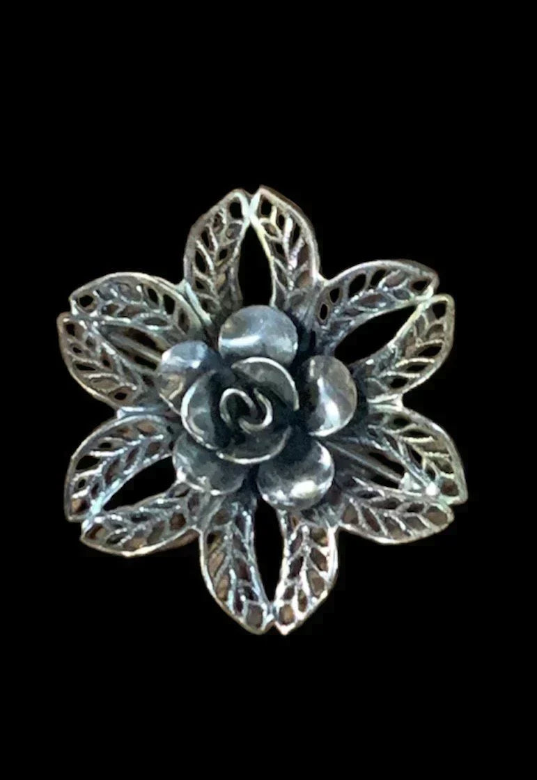 Vintage 925 Sterling Silver By Jewelart Filigree Style Floral Brooch Flower Pin