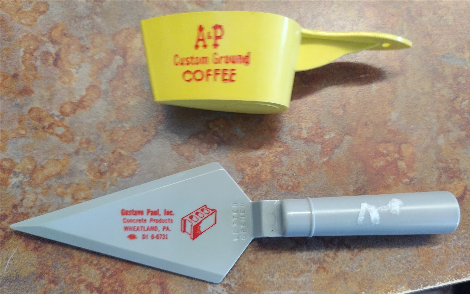Vintage A&P Custom Yellow Coffee Cup and Gray Gustav Paul Trowel Letter Opener
