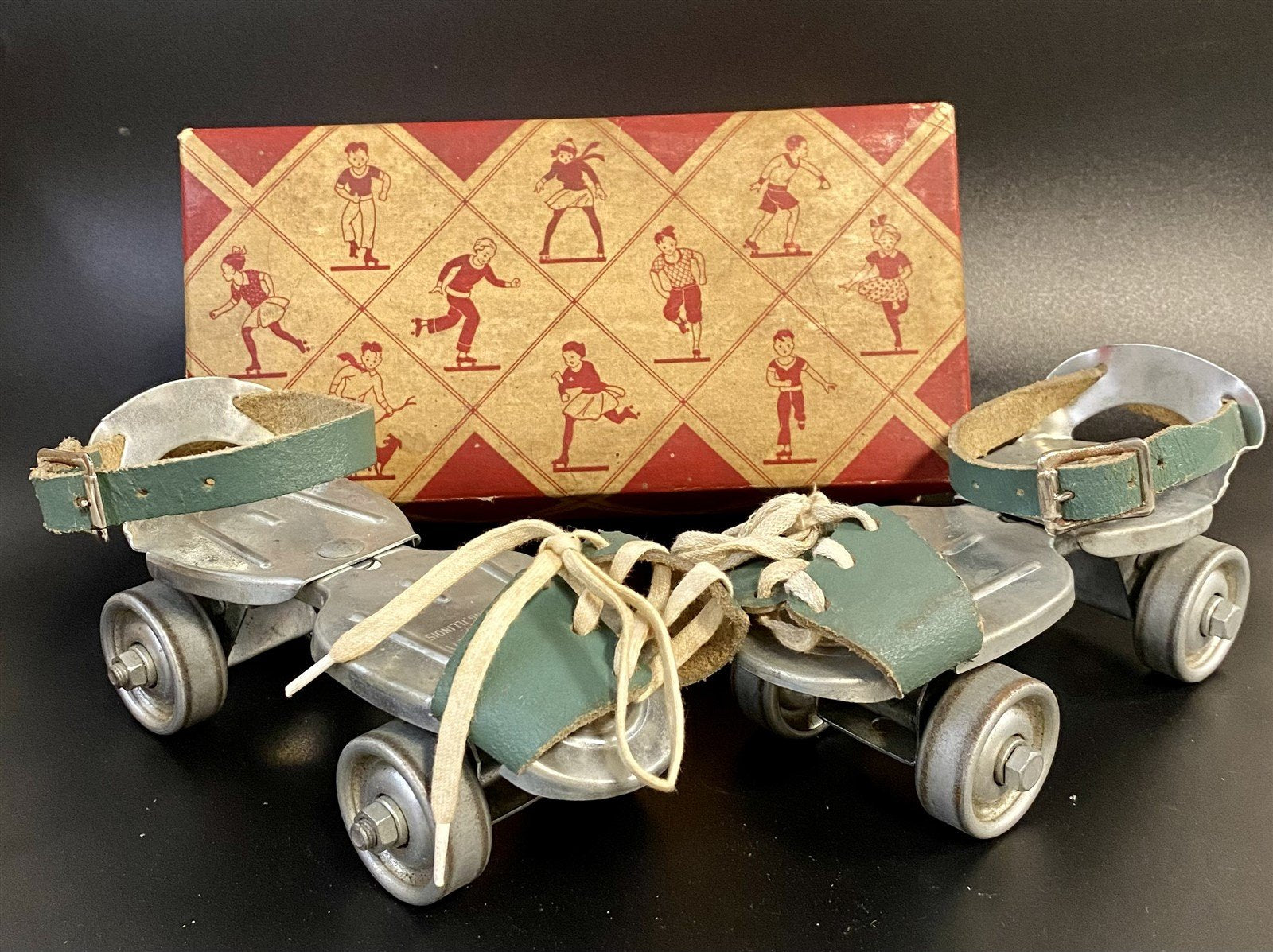 Vintage Adjustable Strap and Lace on Metal Hustler Toy Co. Whizzer Roller Skates