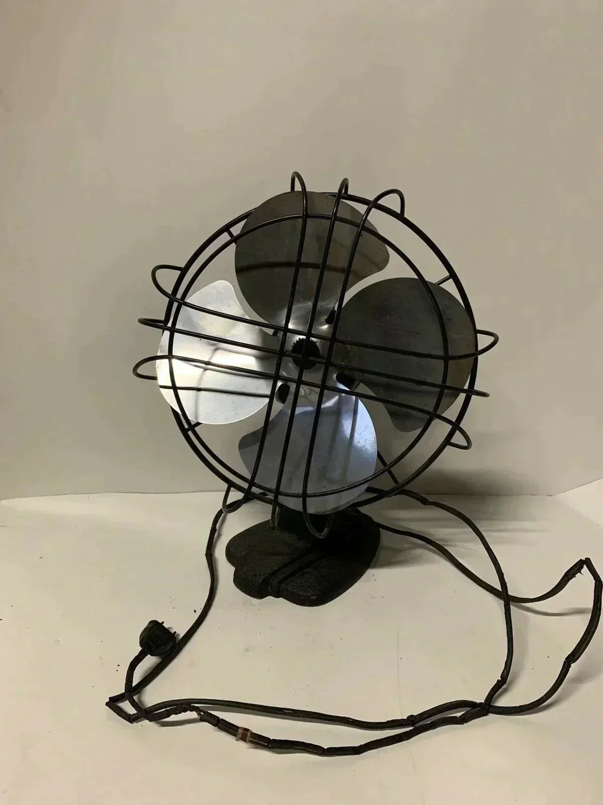 Vintage Black portable cast Iron Steel fan art Deco Steampunk