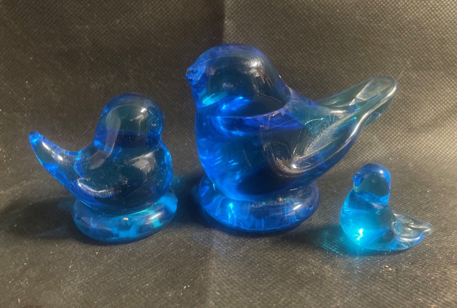 Vintage Blown Art Glass Bluebird of Happiness Bird Figurine Paperweight