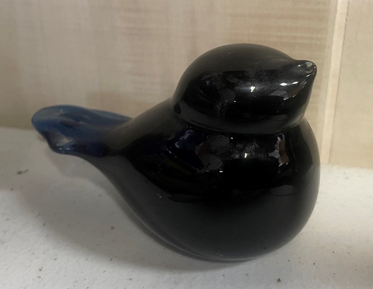 Vintage Blown Art Glass Black Bluebird Figurine Tabletop Paperweight