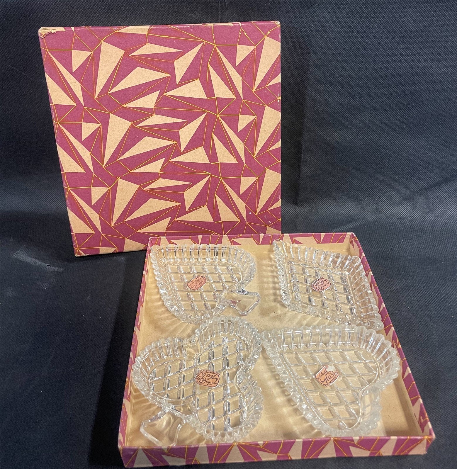 Vintage Bohemia Glass Heart Spade Club Diamond Trinket Dishes Czechoslovakia