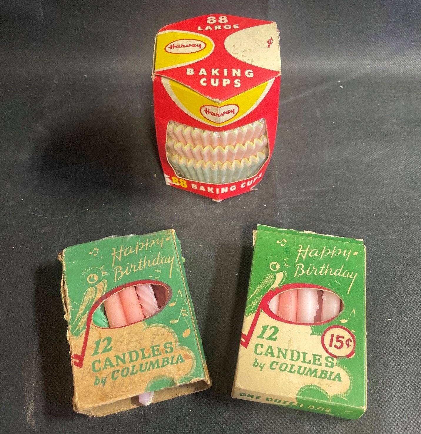 Vintage Boxes of Happy Birthday Candles and Retro Baking Cups