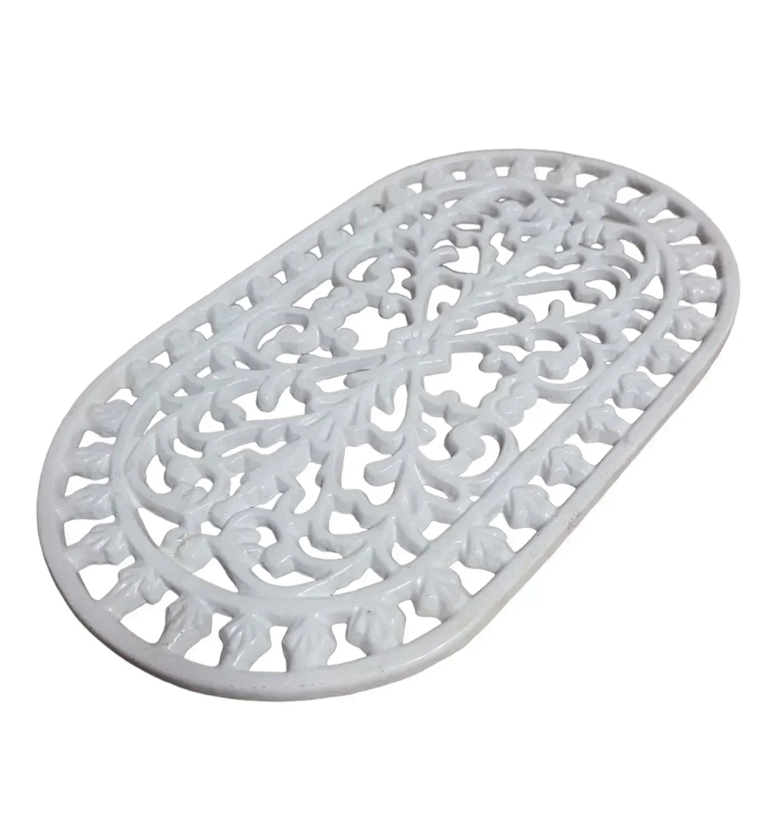 Vintage Cast Iron White Footed Trivet Victorian Ornate Kitchen Stand Antique