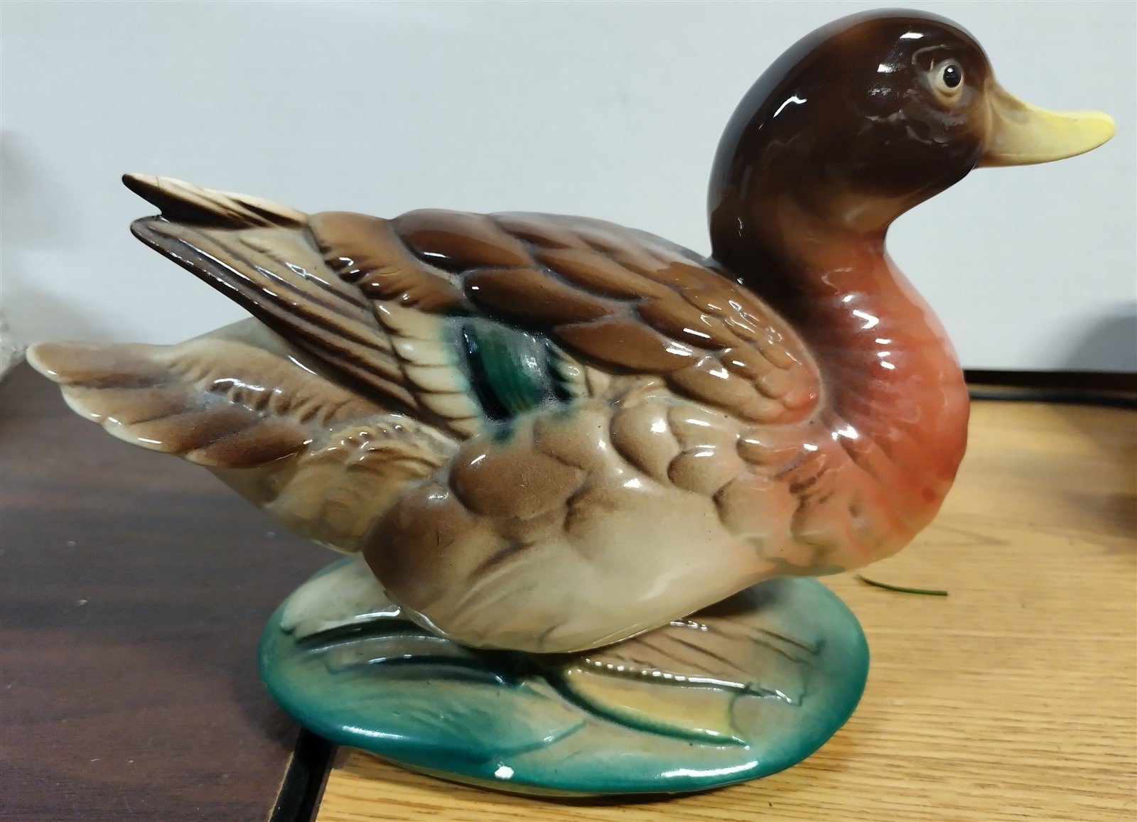 Vintage Ceramic Glazed Painted Green Brown Mallard Hen Duck Bird Statue Figure
