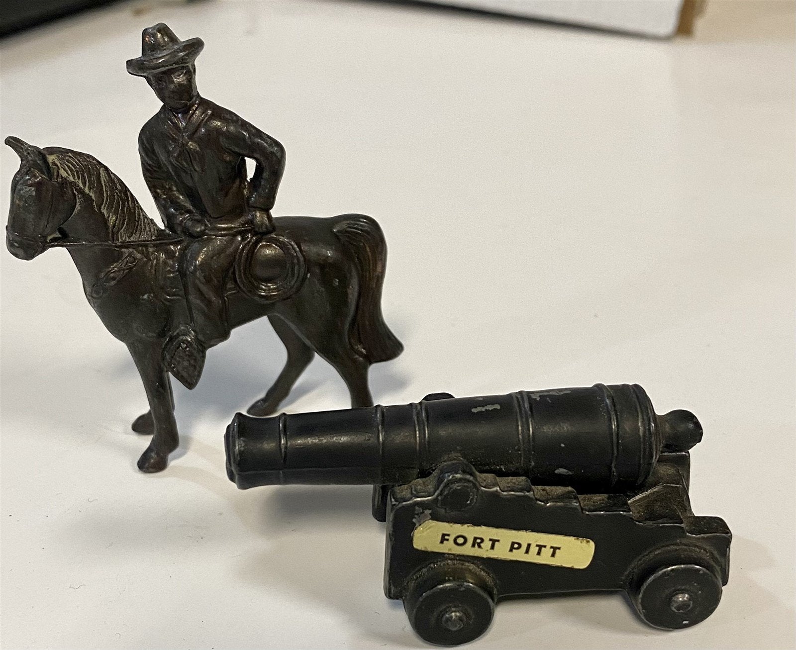 Vintage Cast Iron Cowboy on a Horse Toy and Souvenir Fort Pitt Cannon