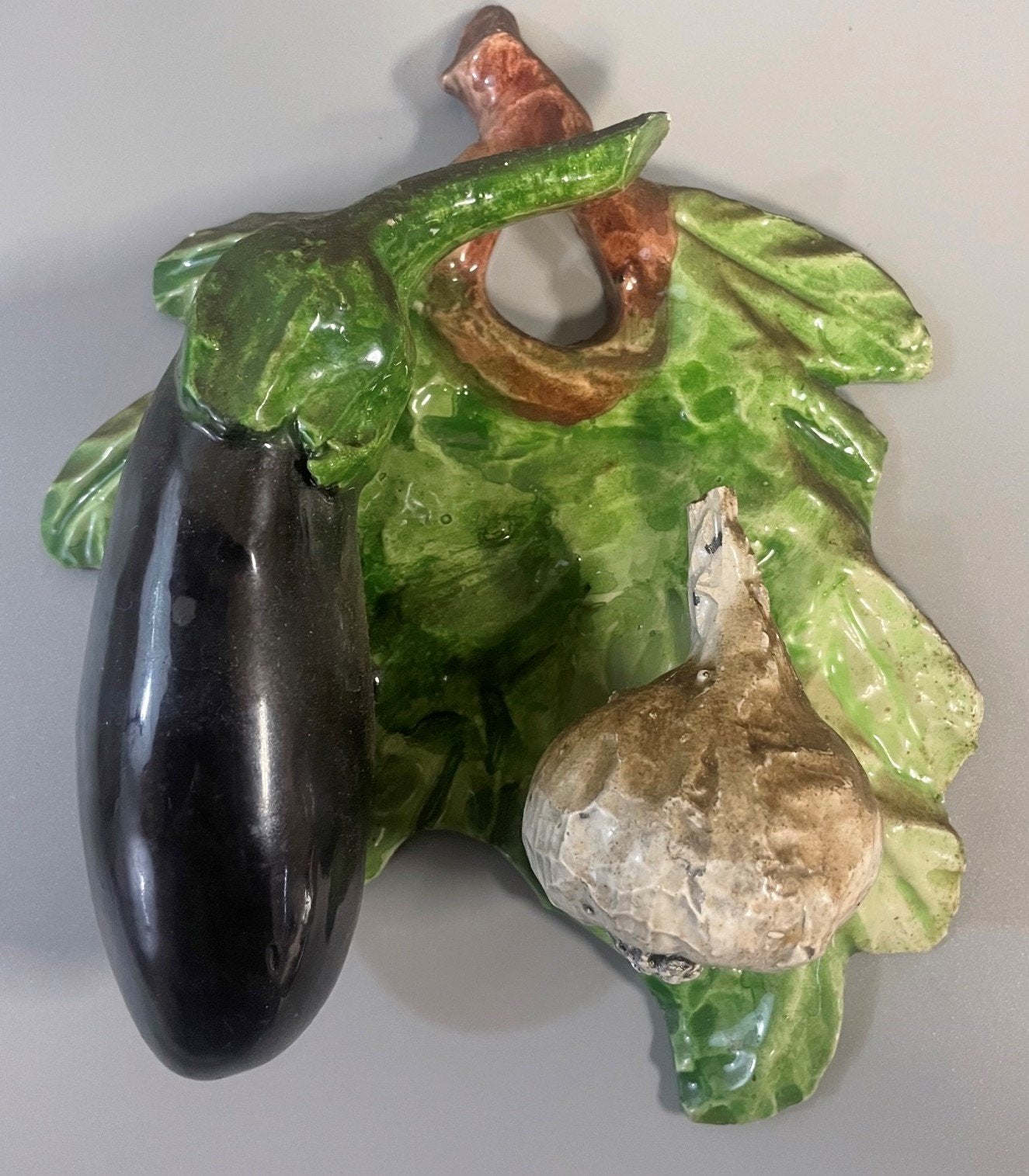 Vintage Ceramic Eggplant Garlic Decorative Hanging Wall Plaque