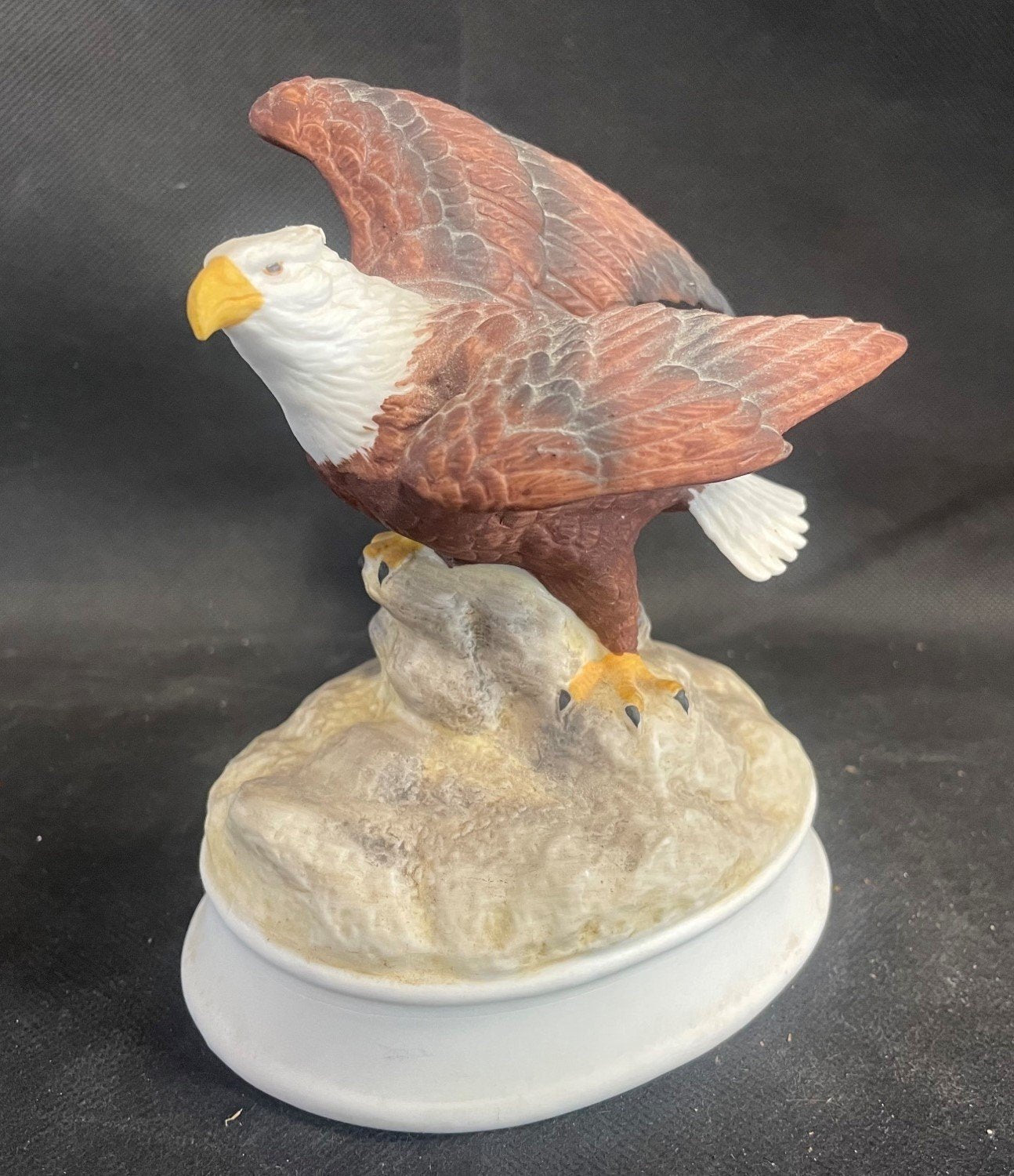 Vintage Ceramic Gorham Bald Eagle Figurine Wind Up Music Box