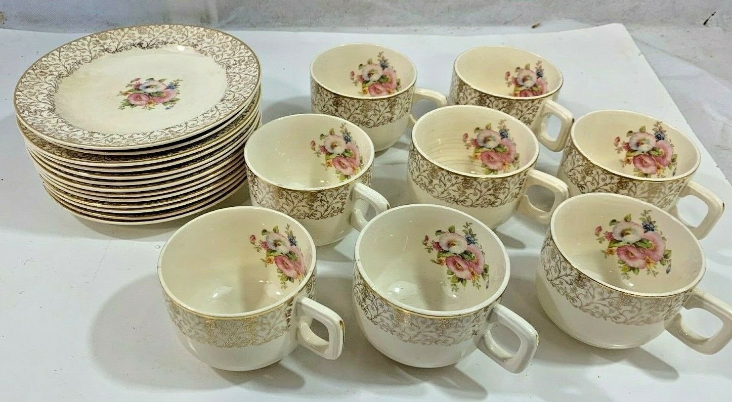Vintage Century by Salem 23 Karat Gold 21 Piece Set 13 Small Plates 8 Tea Cups