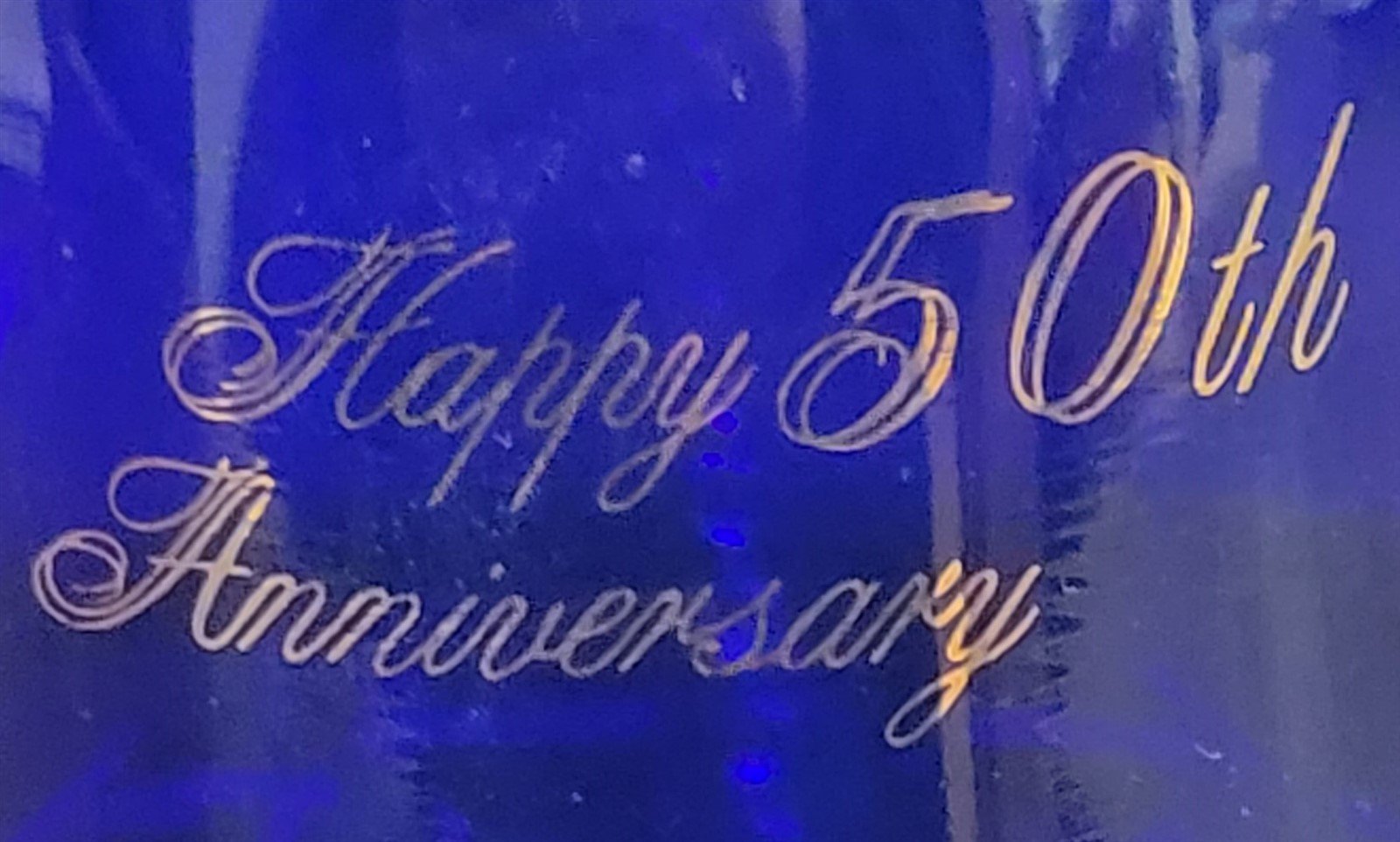 Vintage Cobalt Blue Fenton With Ruffle Bottom Happy 50th Anniversary Bell