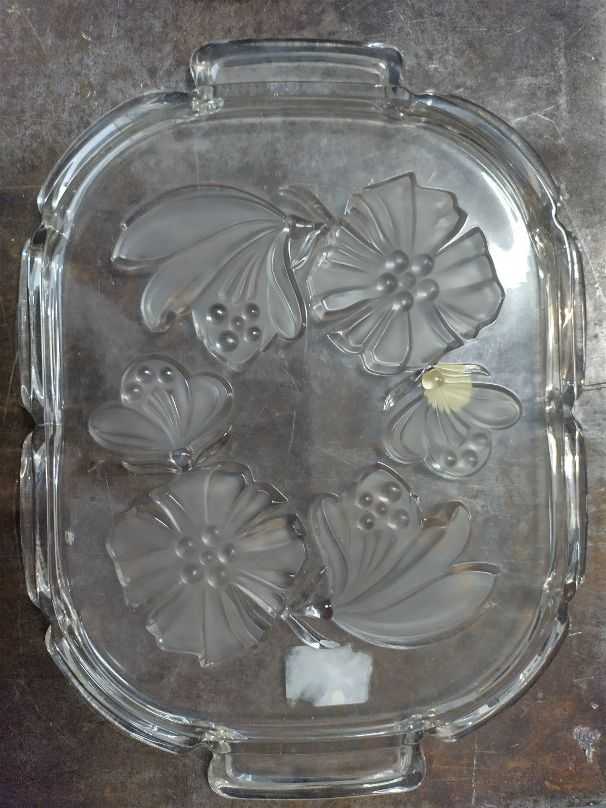 Vintage Clear Glass Walter-Glas Original Flower and Butterfly Decorative Tray