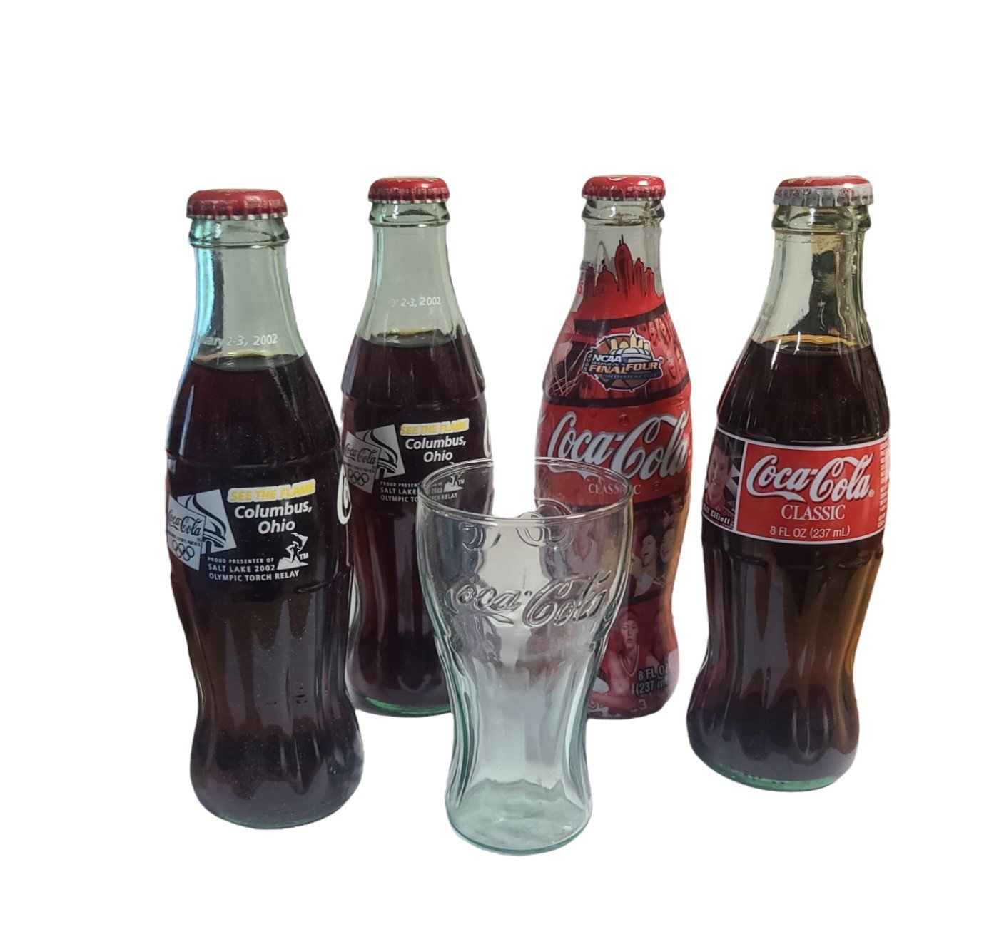Vintage Coca Cola Set Glass Cup Bottles 1998 Bill Elliot 2002 Olympics 2005 NCAA
