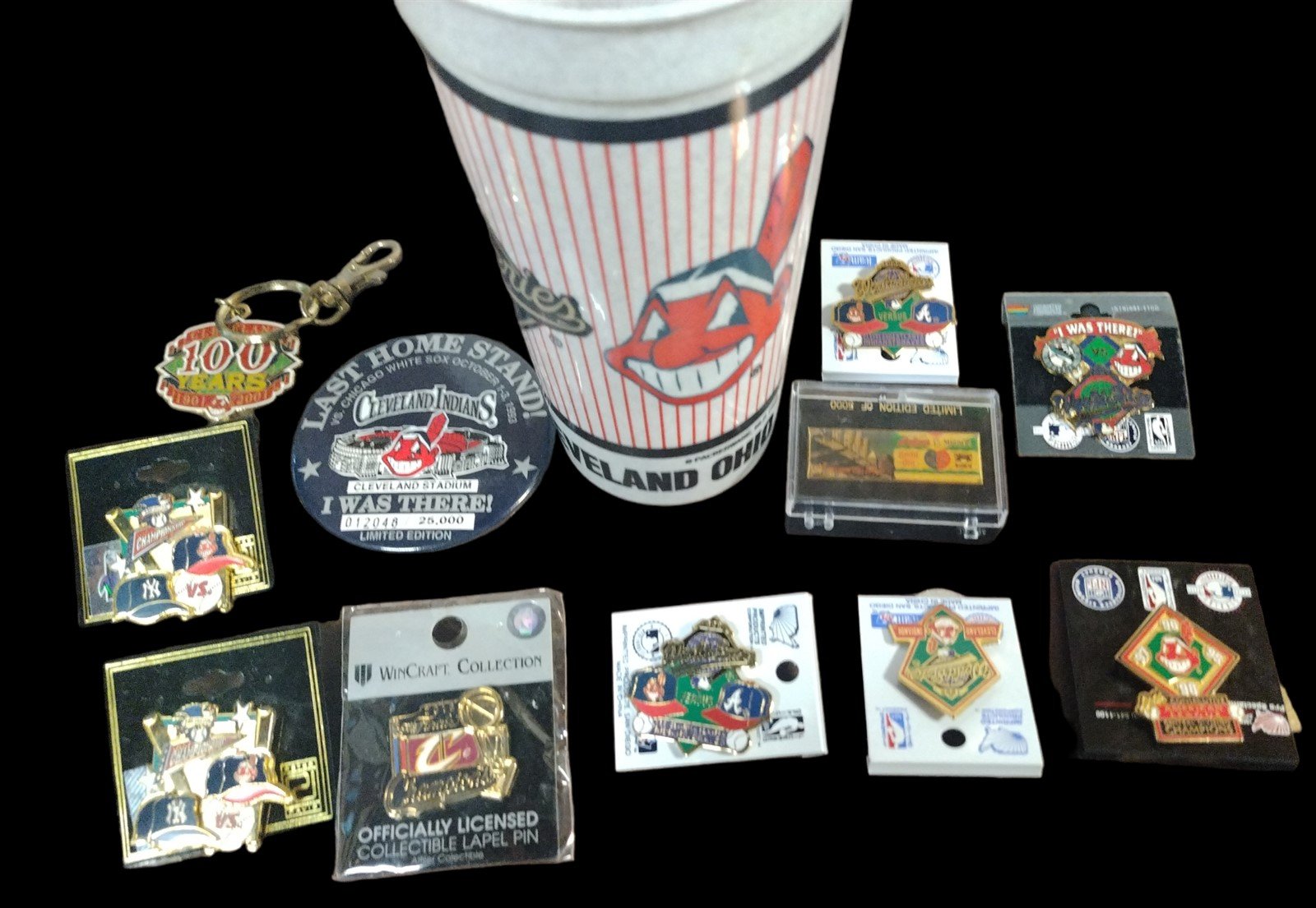 Vintage Cleveland Indians 1990s World Series Sports Exclusive Pins and Cup Merch