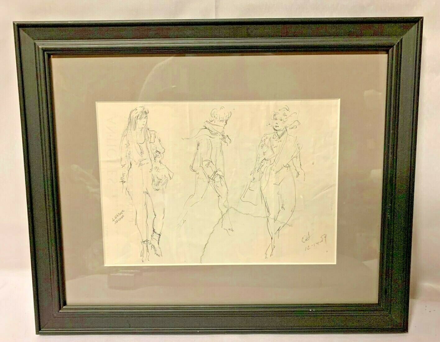 Vintage Clyde Singer Fashion Sketch Framed Original Signed CS 1959