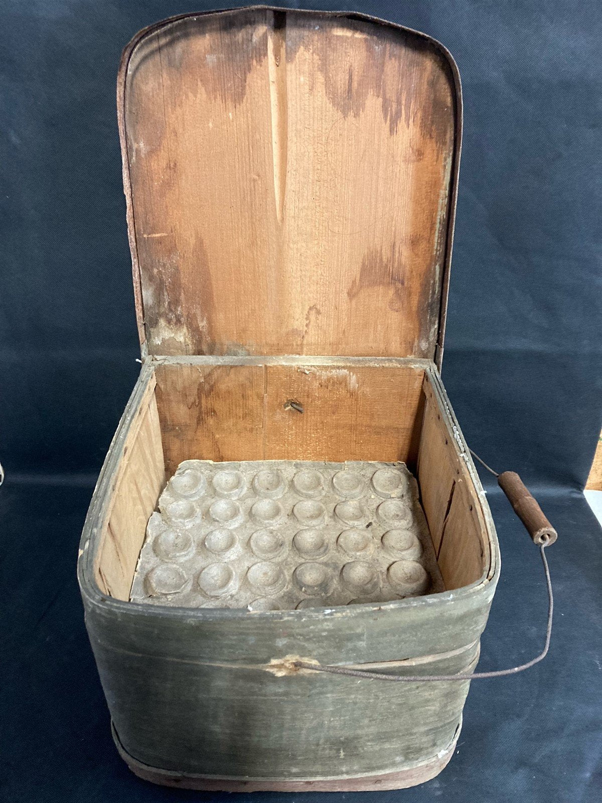 Antique Primitive Rustic Farmhouse Style Wooden Egg Carrying Crate with Handle