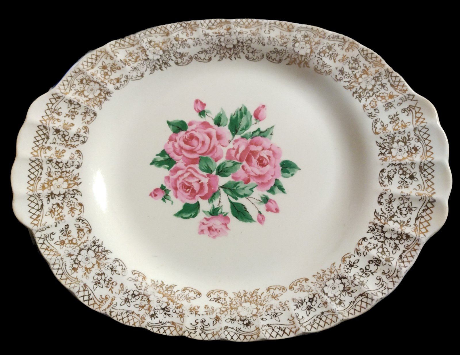 Vintage Gold Flower Trim Warrented 22k Gold Plate Tray and Bowl Kitchen Set