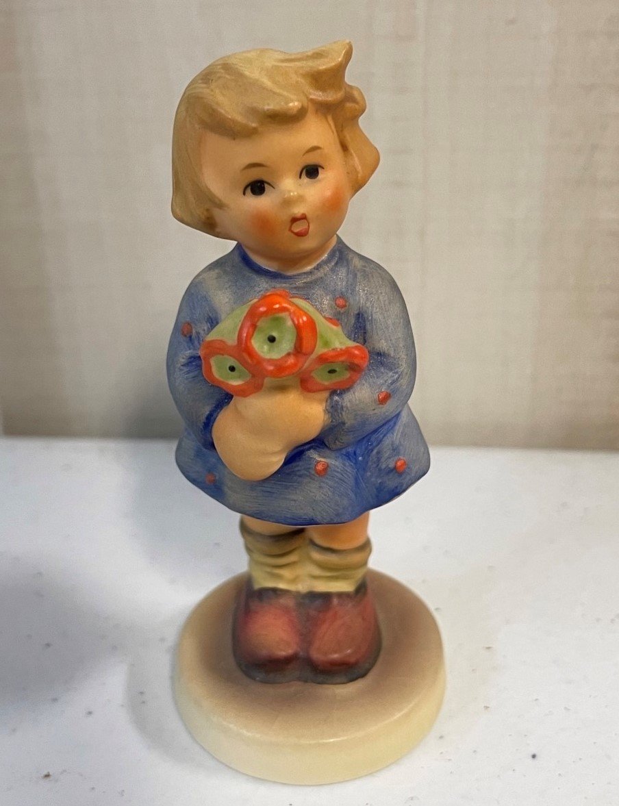 Vintage Goebel Hummel Ceramic Figurine Girl Holding Flower Bouquet