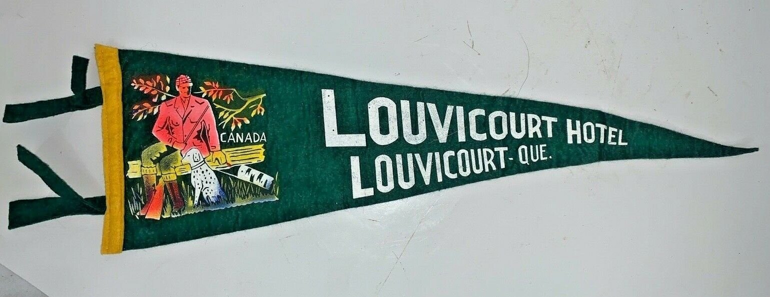 Vintage Louvicourt Hotel Que Quebec Canada Green Felt Pennant